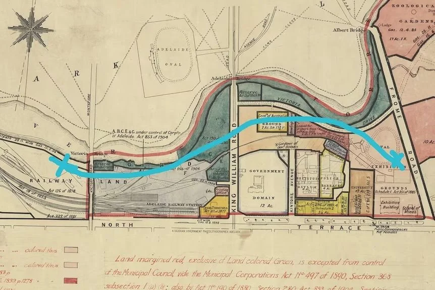 More than a hundred years ago, this site in your Adelaide Park Lands was on the route of a one-kilometre railway line through your Park Lands, a line that used a very short tunnel under King William Road.