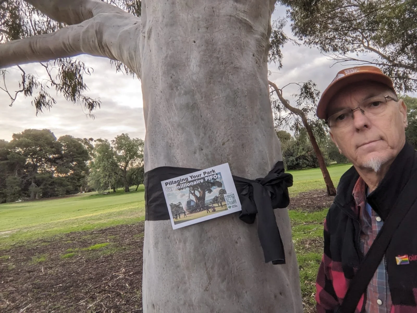 Help us highlight what's at stake here. We'll provide you with the printed messaging and the means to simply put the messages where they belong - on the trees of Possum Park / Pirltawardli.