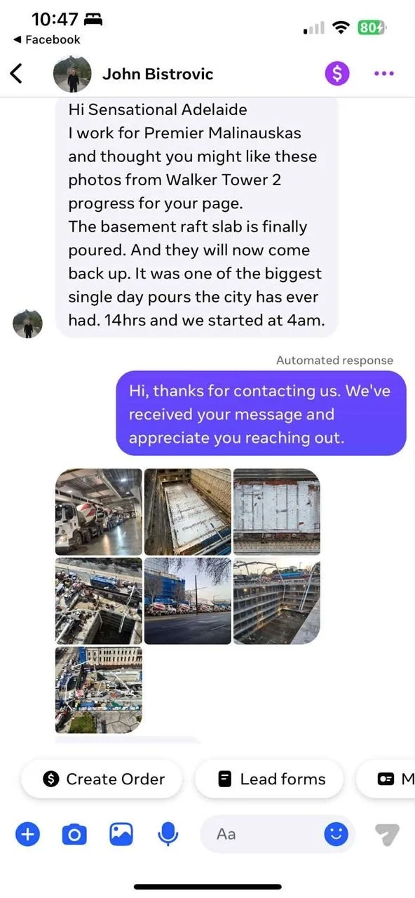 The Walker Corporation is proceeding with construction of its planned 38-storey office tower on Festival Plaza in your Park Lands, without waiting for a National Heritage assessment, nor a pending decision from the Federal Environment Minister.
