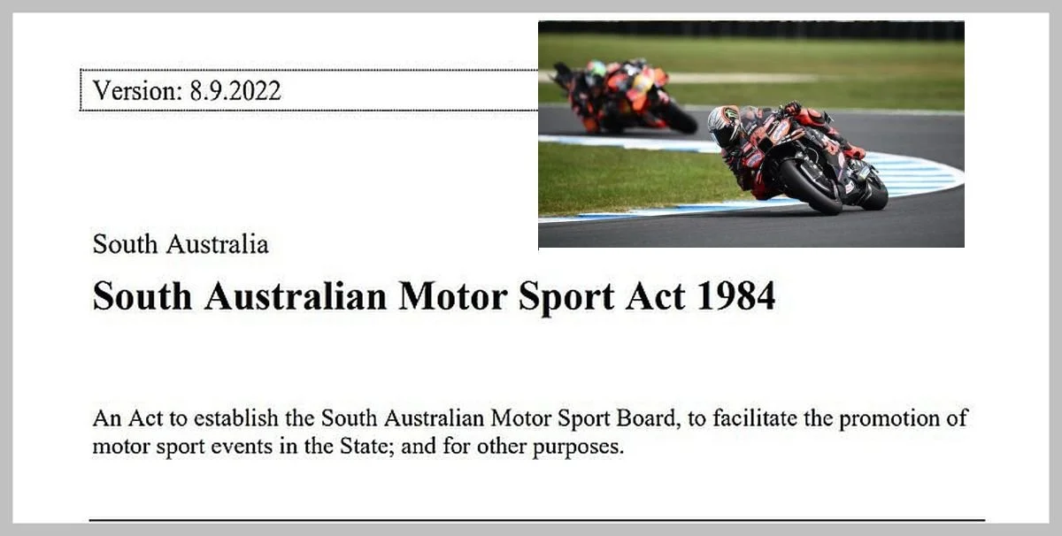 The State Government does not need to change any legislation to facilitate this new motorsport event. A legacy law passed in 1984 to allow the Formula One Grand Prix to be held in your Park Lands gives unfettered powers to the Minister for Motor Sport (currently the Premier) to authorise any and every motor sport event that he wants.