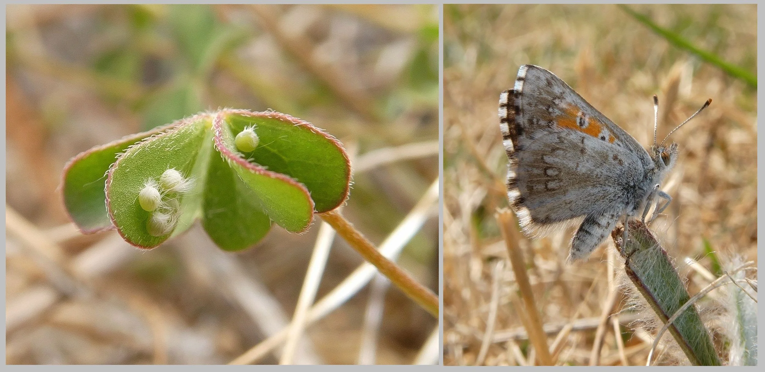 The Chequered Copper butterfly; and its eggs laid on Native Sorrell (Oxalis perennans) in Victoria Park / Pakapakanthi. Pics: Greg Coote.