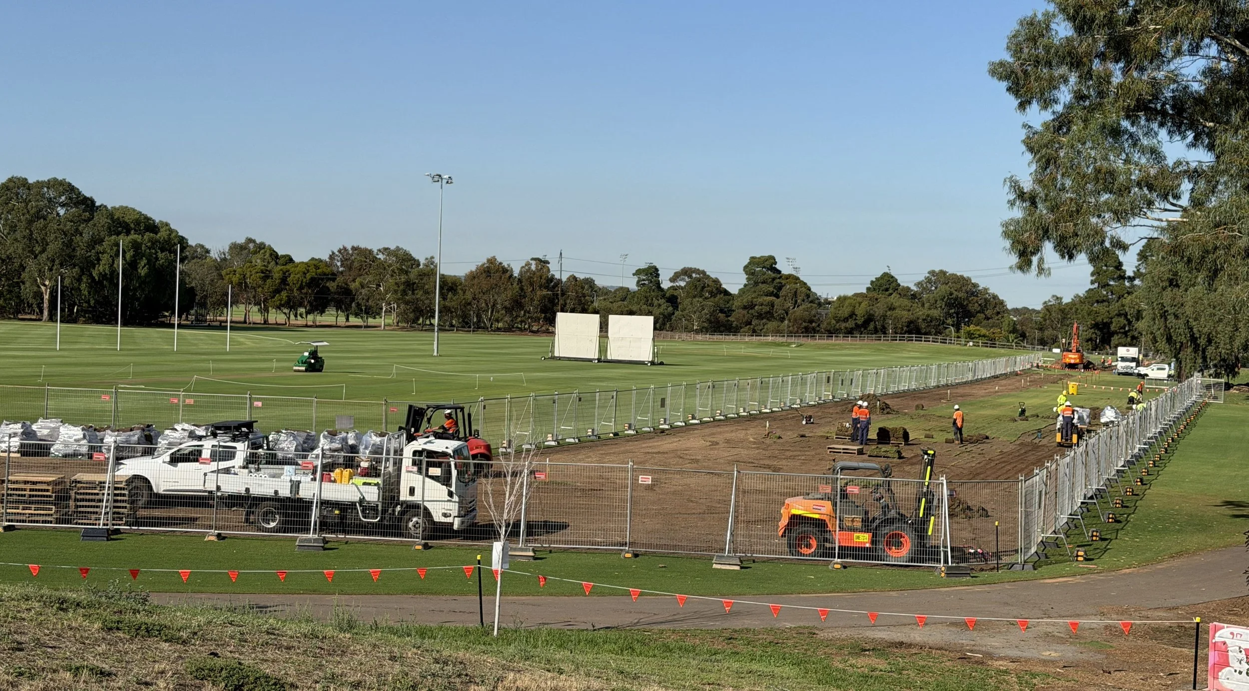 Truckloads of fresh turf have been delivered and are being installed on the western side of Oval #1 near the railway line.